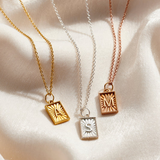 Sunbeam Rectangle Initial Charm Necklace