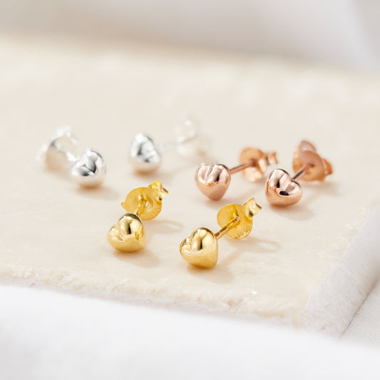 Heart 9ct Gold Stud Earrings with Cubic Zirconia
