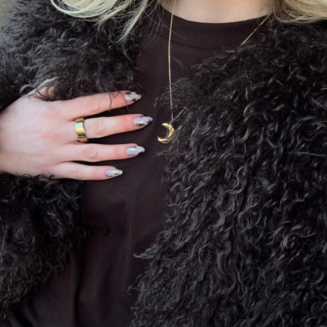 The Chunky Moon Pendant Necklace is a bold statement piece designed for style and symbolism. The crescent moon pendant represents love, guidance and new beginnings, making ...