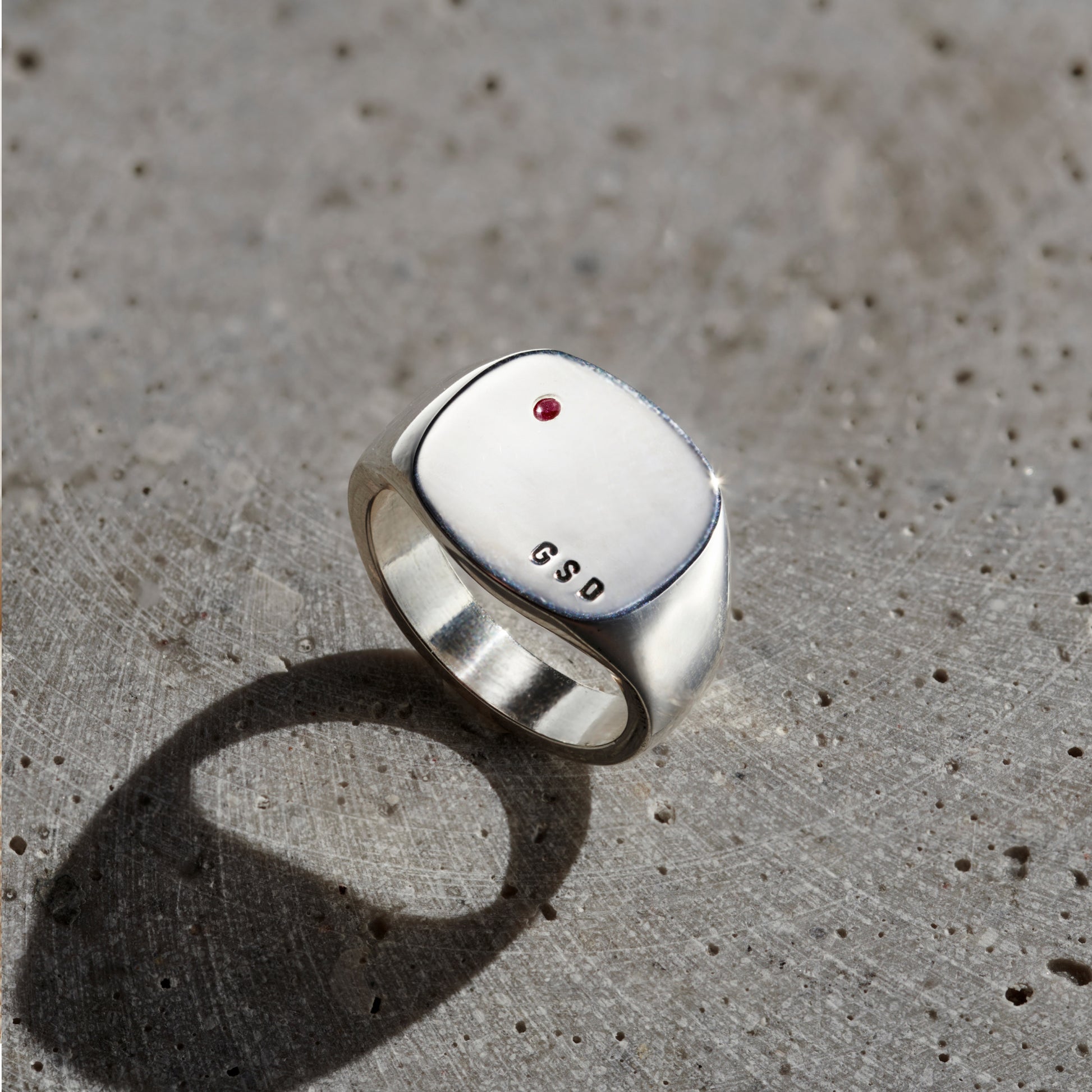 This gorgeous men's birthstone signet ring is crafted from Sterling silver. Our jewellers can personalise this ring with your chosen initials as well as handsetting your chosen birthstone. Perfect as a perso...