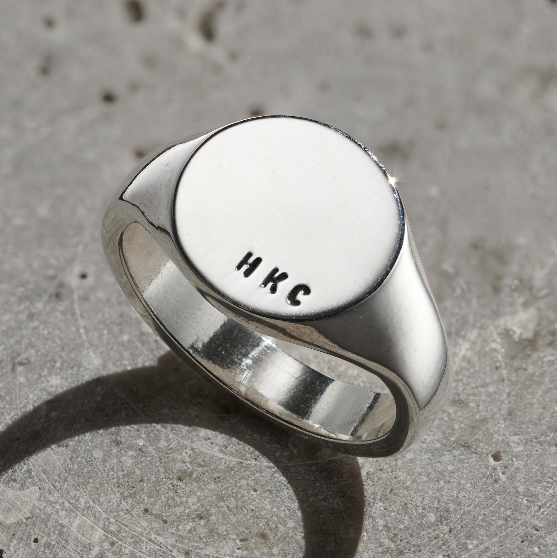 This gorgeous personalised ring is made from Sterling Silver. Larger than our usual signet rings this design is the perfect way to make a statement. Our jewellers can personalise your ring with your chosen i...