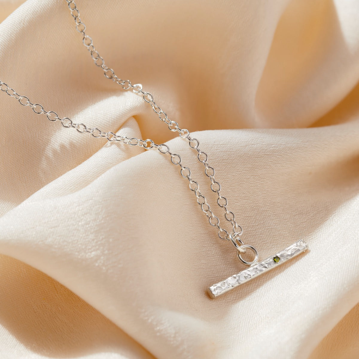 This beautiful necklace is made in our Brighton workshop. Crafted from sterling silver by our expert jewellers, this necklace features a t-bar pendant suspended from on of our classic trace chain necklaces. ...