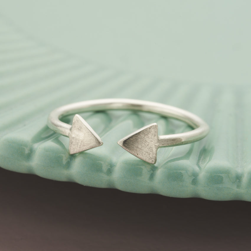 The stylish Luxe Triangle Open Ring is handcrafted from solid sterling silver in our Brighton jewellery workshop. The ring features a slim open band finished with two dainty flat triangle shapes, perfect for...