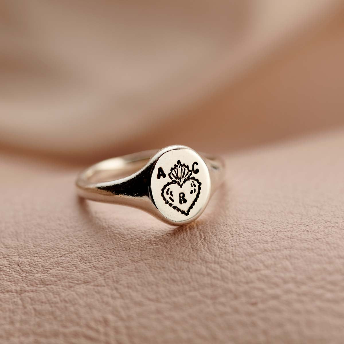 Personalised Sacred Heart Signet Ring